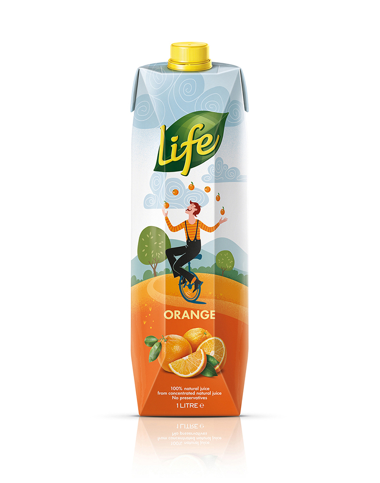 水果汁的生活范圍兩年前就進入了市場,從第一天開始就一直在商店貨架上雕刻出一個。他們的包裝設(shè)計遵循顯示超大水果照片預(yù)計公式,爆開的多汁性和活力。不幸的是,這一藝術(shù)方向與競爭對手的海上混合在一起。只有兩年的時間,生活的果汁作出了大膽的決定,重新設(shè)計他們的整個包裝線。的主要目標是一個強大的貨架的存在,將捕捉消費者的眼睛。
