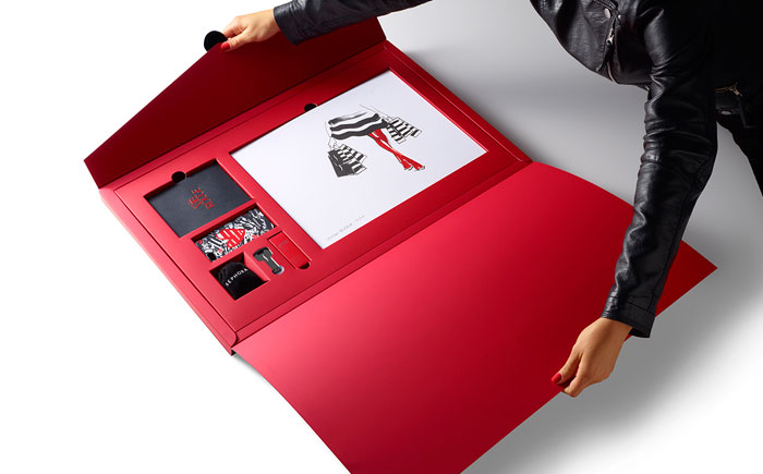 在前面的每一個(gè)圓滑,黑色,16“x24”信封,是收件人的姓名寫在紅色的書法。內(nèi)部是大量柔軟的胭脂紅,每按試劑盒項(xiàng)目很好地存放在自定義威爾斯。包括一個(gè)VIB胭脂歡迎包,一個(gè)全尺寸的咬唇膏在自定義胭脂紅色燈罩,絲芙蘭品牌iPhone案件和耳機(jī),和限量版編號的版畫藝術(shù)家路維薩·布菲特簽署。新聞稿本身被加載到一個(gè)光滑的黑色USB驅(qū)動器在一個(gè)關(guān)鍵的形狀。從絲芙蘭個(gè)人歡迎信放在上面。”